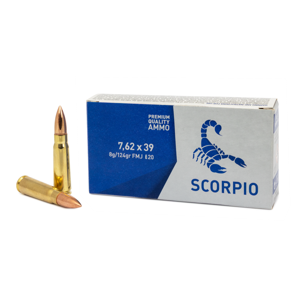 Náboj SCORPIO 7,62×39 mm FMJ 8 g je navržen jako univerzální střelivo vhodné nejen pro výcvik, sport a rekreační střelbu, ale také pro přesnou střelbu.
